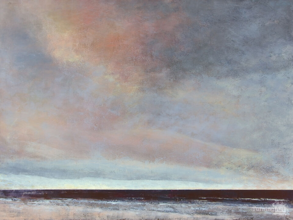 "Shadow Act" provides a tranquil retreat through its harmonious blend of muted blues, soft grays, and warm peach tones. A calm sea meets an expansive sky, fostering serenity and depth in any space. Textured brushstrokes introduce natural movement, making it an ideal centerpiece for reflection and relaxation. This artwork enhances your environment with a soothing presence, creating a restful and balanced ambiance.