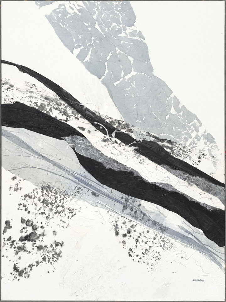 Jan now focuses on a larger format of paintings, while continuing the flowing, floating visual effects trademarked in her artwork with Japanese handmade Washi paper.