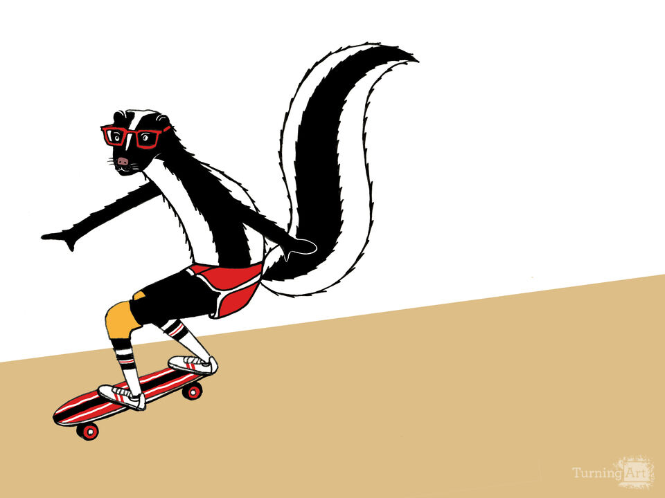 Skunk has been working hard to master the skateboard. They've got the style down, but now it's time to work on their tricks.