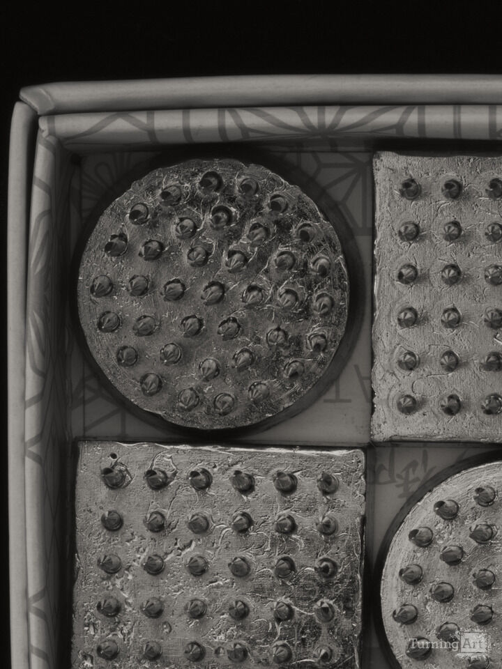 Ikebana, the traditional Japanese art of floral arrangement, is a millennia old from its ancient roots in the imperial city of Kyoto. This black-and-white image shows minature traditional ikebana stands.
