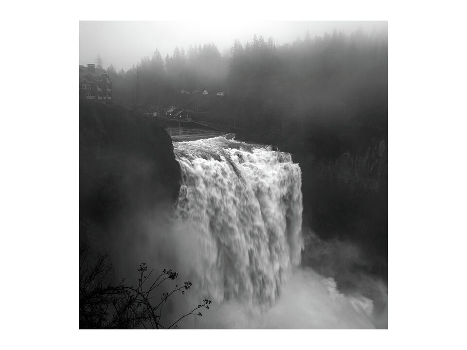 This image showcases the wild strength and timeless beauty of Snoqualmie Falls. On a gray, rain-soaked day, I chose a black and white palette to accentuate the vivid contrast between the waterfall's vigorous torrents and the soft, mist-veiled surroundings.