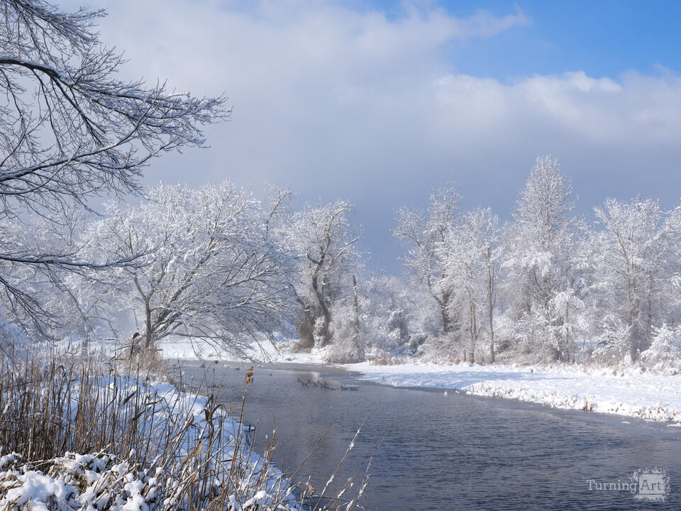 Geese swim in the chilly waters of a Delaware River tributary just after a early season storm passed over the Logan Township area