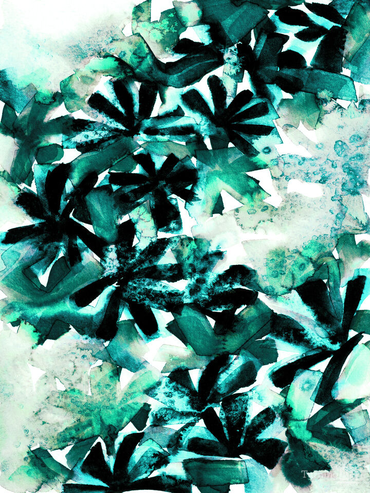 SNOWY STARS 3 COLORFUL FLORAL ABSTRACT WATERCOLOR PAINTING