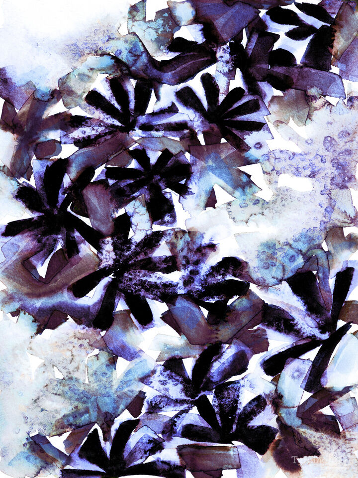 SNOWY STARS 5 COLORFUL FLORAL ABSTRACT WATERCOLOR PAINTING