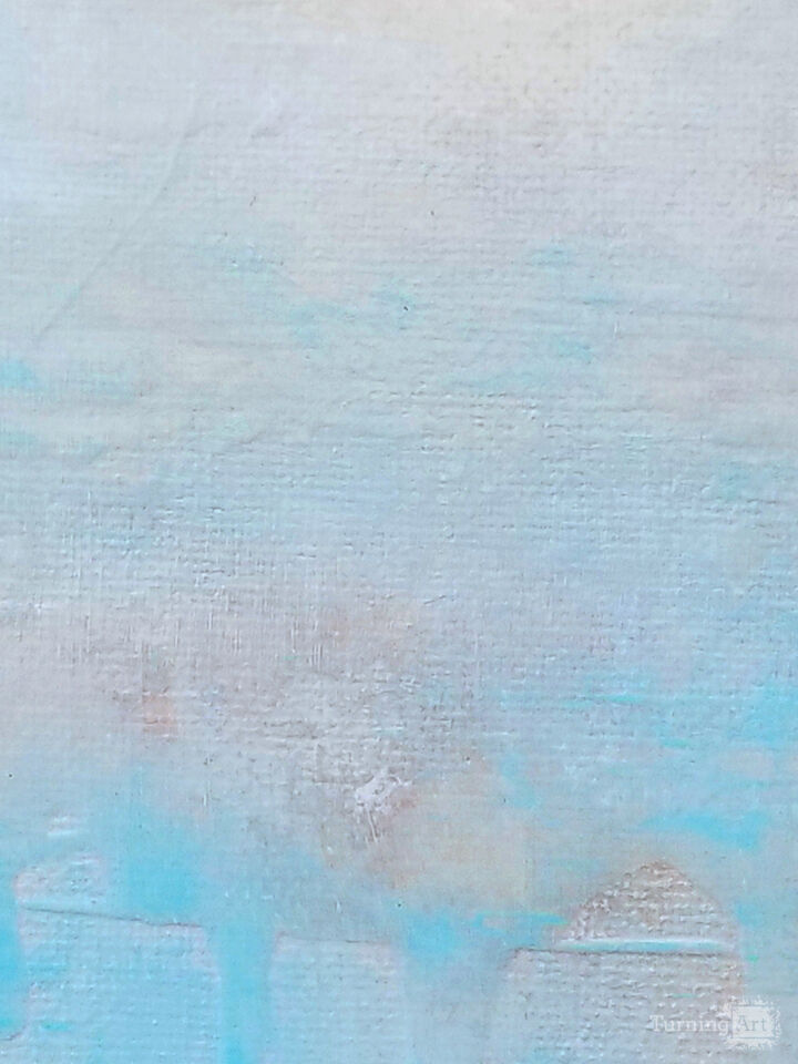 SOFT LANDING is a soft abstract. Inspired by coastal waters, this soft aqua, cream, tan original print is a perfect addition to any room where you want a relaxing and softer look. Somber, quiet abstract.