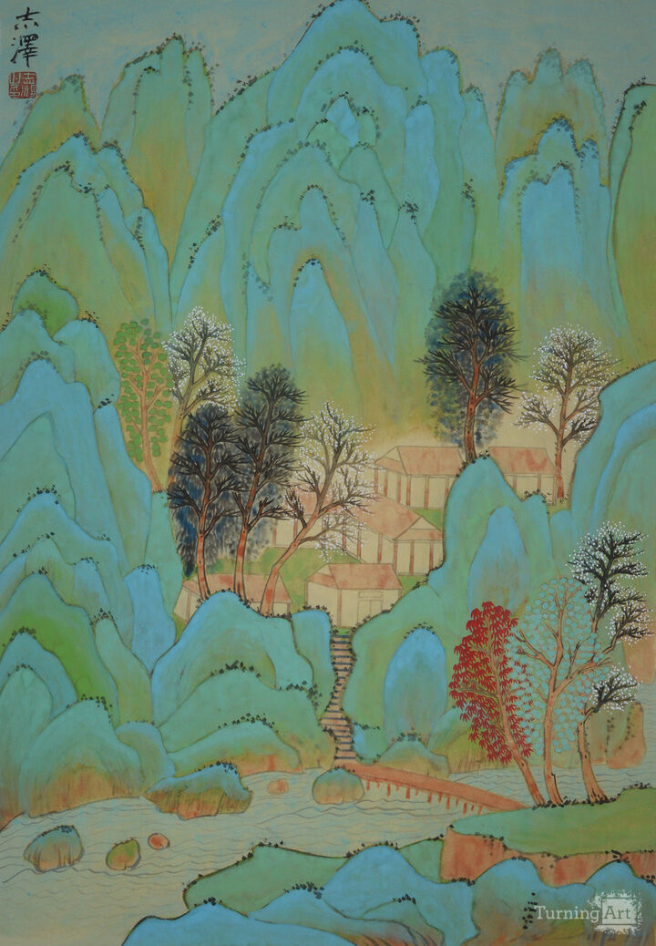 Original Chinese Landscape Painting,67×45cm,Ink and Color on rice paper,2022,Spring Subject.
