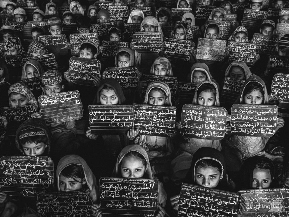 Rohingya refugee children learn education in an arabic school inside a refugee camp in Bangladesh