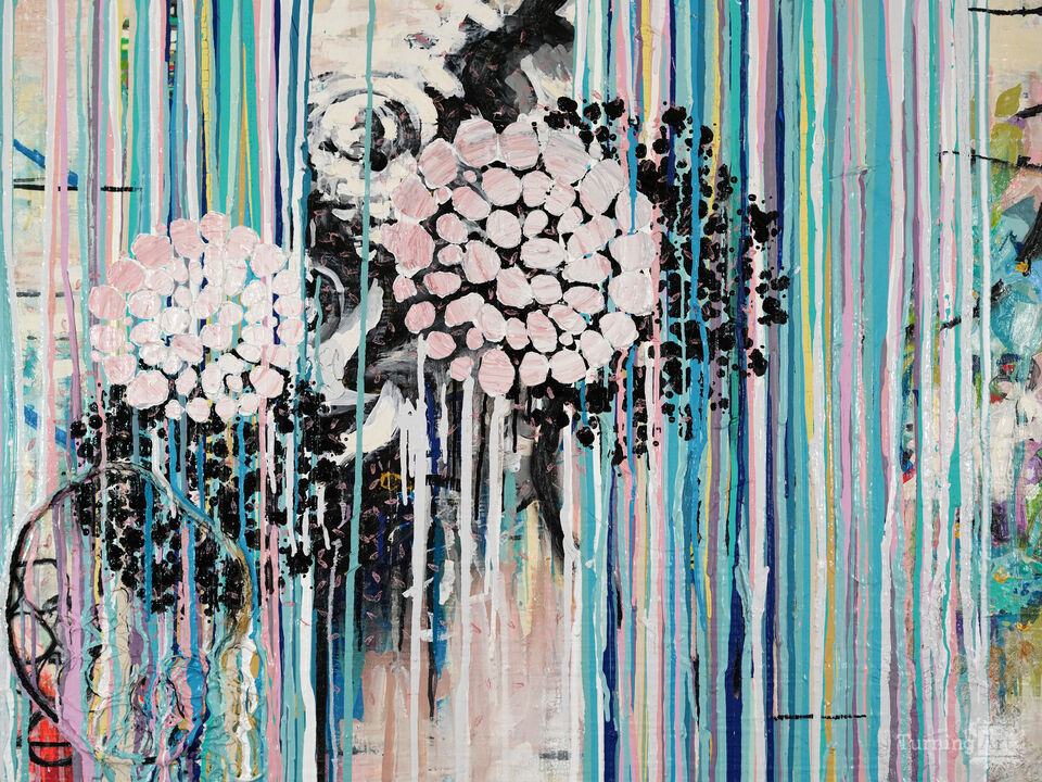 This work is from a series of works inspired by my interest in looking at the microscopic beauty of cross-sections of stems. I'm fascinated by the interior beauty of their natural abstractions. The xylem and phloem weave tapestries of cellular mosaics, each vessel a tiny, stained-glass window illuminating the plant's inner architecture. The cross-section, a slice of interior life, reveals fractal patterns, where nature's artistry paints with the delicate strokes of living geometry.