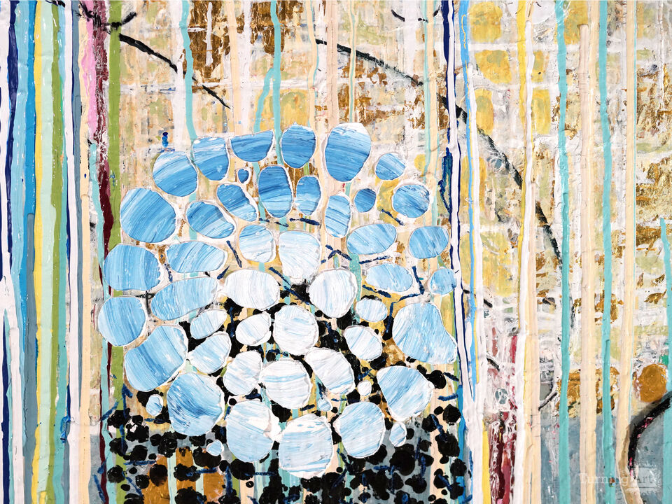 This work is from a series of works inspired by my interest in looking at the microscopic beauty of cross-sections of stems. I'm fascinated by the interior beauty of their natural abstractions. The xylem and phloem weave tapestries of cellular mosaics, each vessel a tiny, stained-glass window illuminating the plant's inner architecture. The cross-section, a slice of interior life, reveals fractal patterns, where nature's artistry paints with the delicate strokes of living geometry.