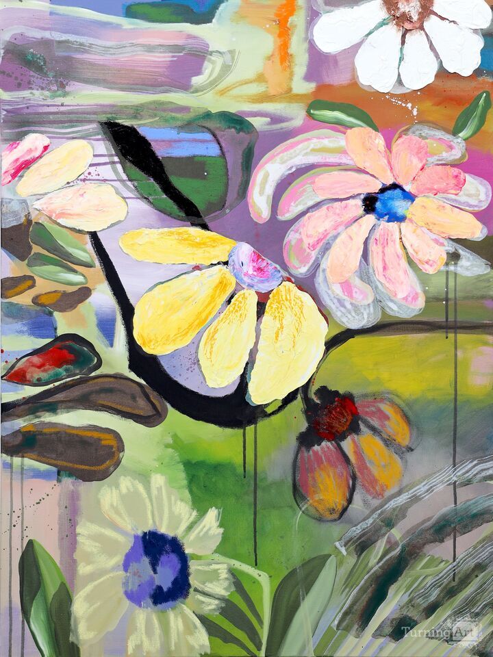 Heavy plaster paint forms a raw, sculptural floral surface, giving the emotions weight and presence, while acrylic paint and oil pastel soften and disturb the form, mirroring the fragile balance between tenderness and pain. The flowers do not bloom perfectly; they exist in a state of becoming—bruised, vulnerable, and honest.