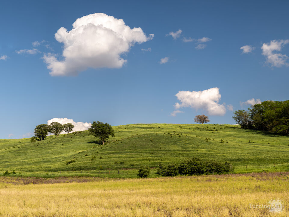 Golden grasses give way to vibrant green slopes beneath a wide Midwestern sky dotted with drifting clouds. Summer on the Hills captures the gentle beauty of the season, where light, color, and open space create a sense of calm and renewal. This landscape invites viewers to pause and breathe, making it an ideal choice for healthcare environments, wellness spaces, and interiors seeking a grounded connection to nature.