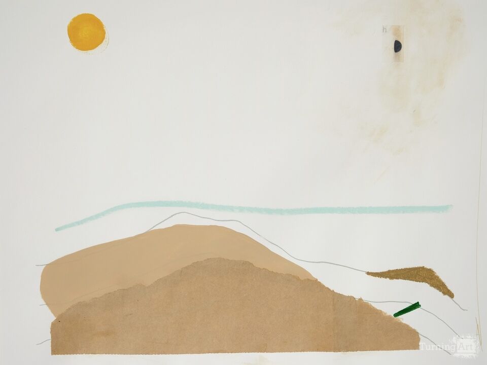 Her artwork features a balance of natural visual elements and man-made materials, with items like sun-bleached plastic and vintage paper serving as the foundation for many of her pieces. These materials act as visual inspiration whether they make it into the finished piece or not. Dyanna captures a snapshot of her environment through her these carefully selected materials. She keeps a balance between a pleasant abstract aesthetic with muted natural colors and less refined materials. Dyanna's use of these materials reflects the intrusion of man-made objects into our natural environment and the complex relationship between humanity and the natural world.