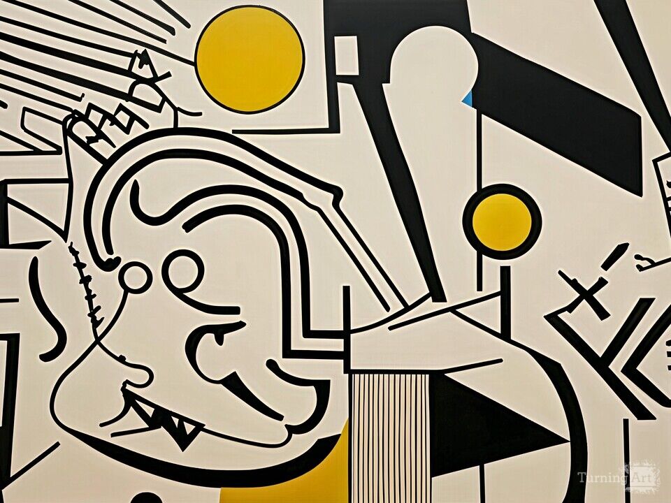 In crafting this piece, I aimed to blur the boundaries between figurative grace and geometric abstraction. Using acrylics, I highlighted the stark contrast of black and white with pops of gold, which play with the light and energize the space. This painting pulses with rhythmic patterns that inspire a sense of movement and vitality. It's not just a visual experience but an emotional journey, capturing the pulse of life through bold, pop art-inspired dynamism.