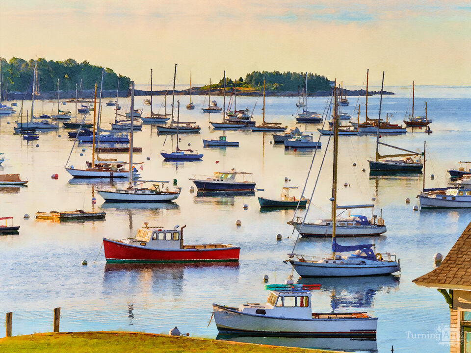 The Maine coast is studded with harbors of all sizes. I particularly like Rockport Harbor because of its intimacy, as well as being full of boats of all types and sizes.