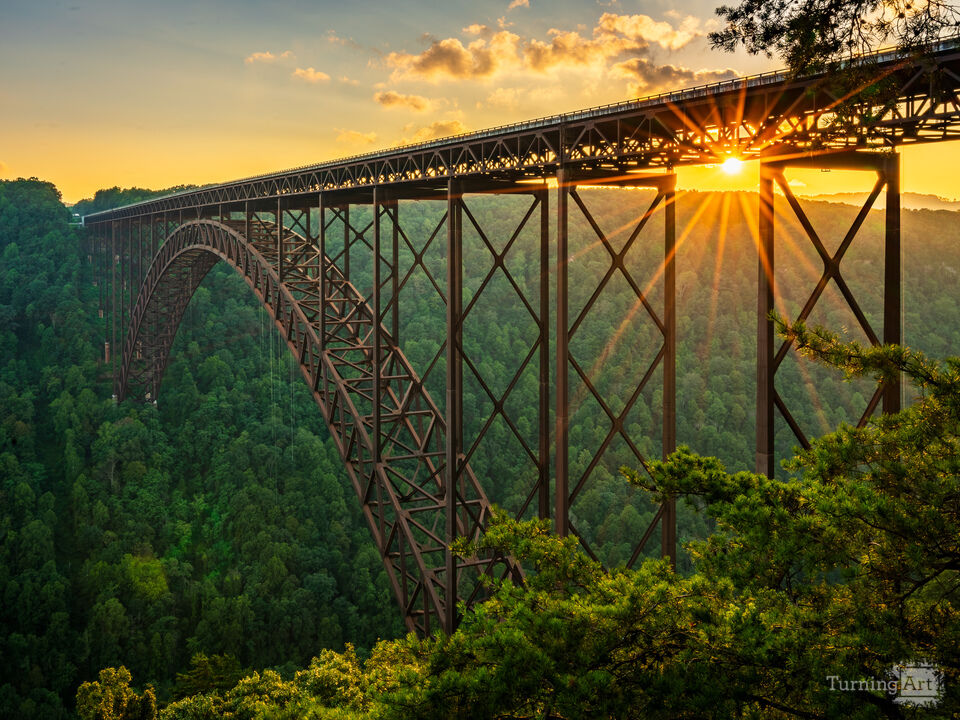 This was almost the one that got away. I was driving back through West Virginia after a vacation and stopped at the visitor center for a break. The sun was slowly sinking and I decided, on an impulse, to race down the steps by the bridge to try to capture an interesting view. And I did – the sun was in a perfect position and a small aperture gave the distinctive star shaped glow. Perfect!