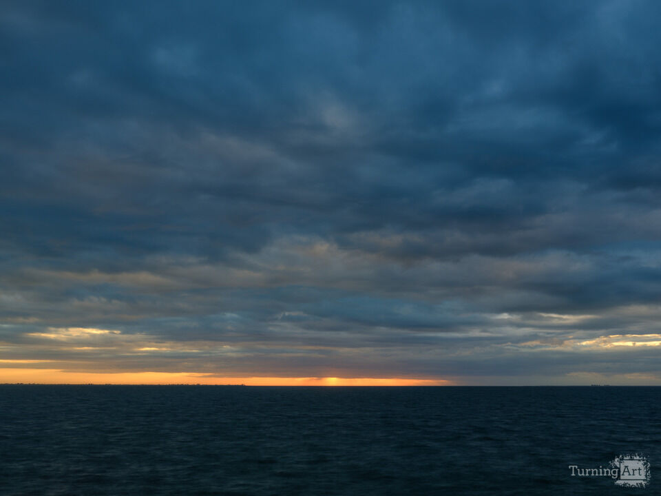 Colorful sunset and dark skies over Tampa Bay in Florida