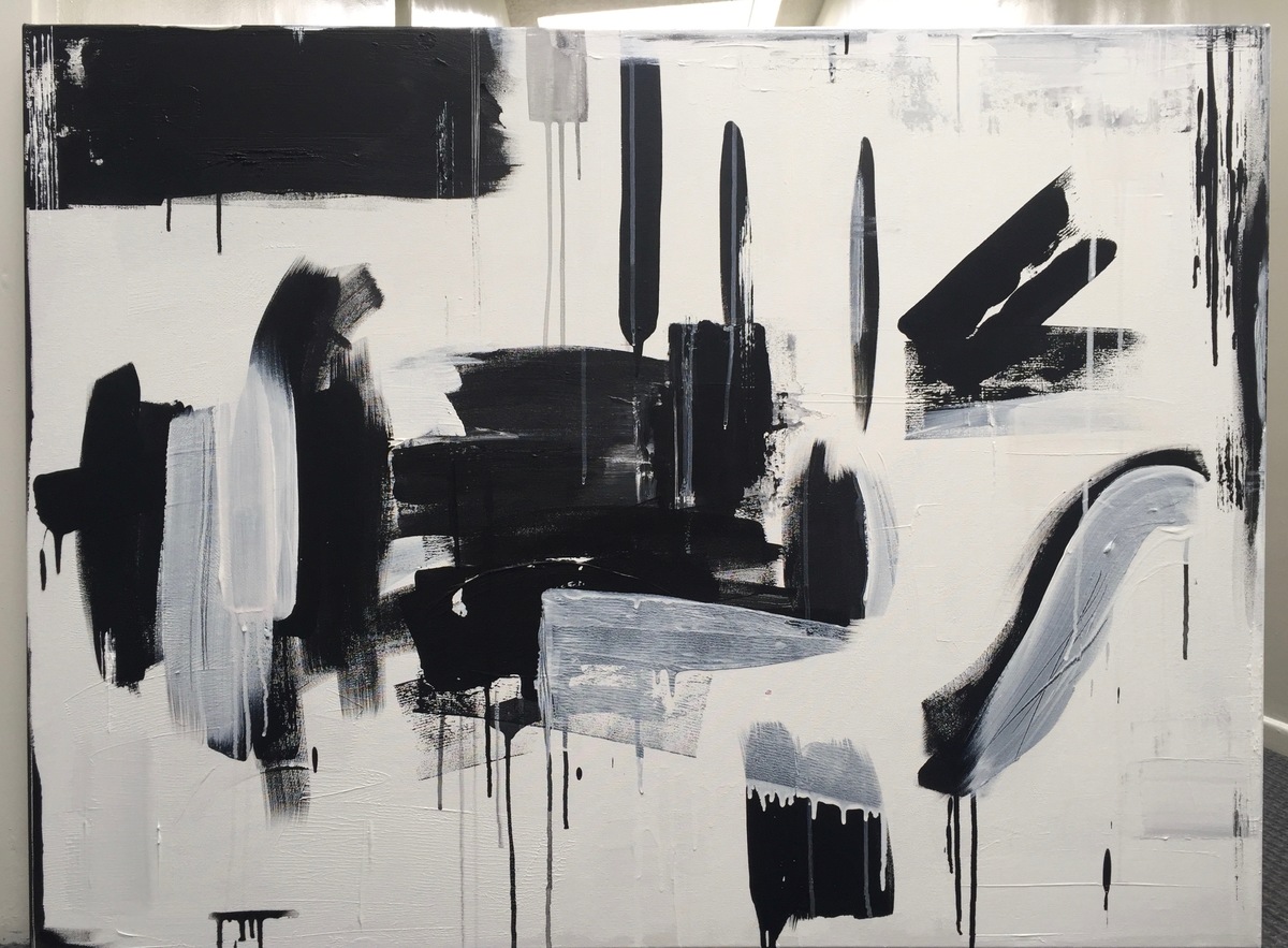 I had created another black and white piece titled The Black & White One and I felt there was a story to tell and it required a sister to it hence Part II. I tend to use many different colors in my art as a way of splashing out various emotions on to canvas however I was really surprised that only using black and white I was still able to express myself. In due course I will continue to add to this series of black and white paintings as the mood arises.