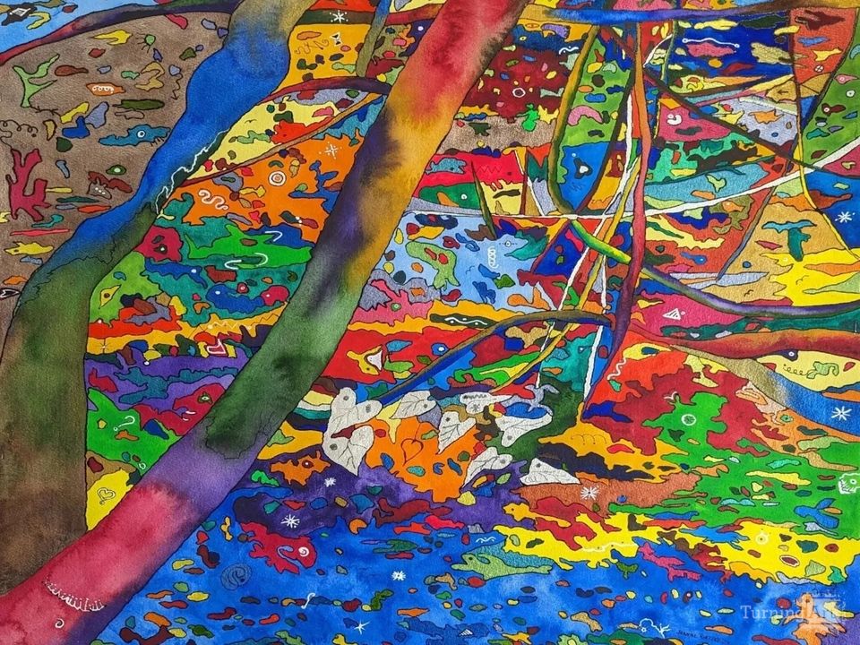 Inspired by nature, Jeanne's abstracts turn into almost puzzle-like images. The trees and the motion are obvious, but the color is unexpected.
