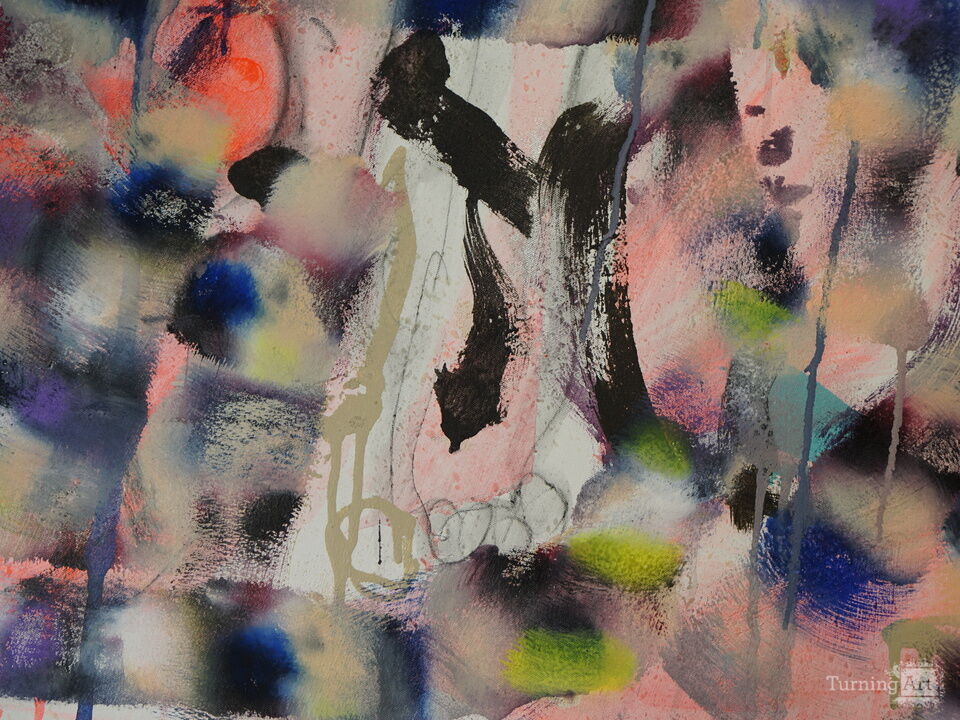 Action has always played a dominant role in the development of Joe's artist's oeuvre and the influence of alternative art forms and mediums can be seen in Joe's willingness to destroy in order to create. He prefers to staple canvas directly to the floor in order to adequately distress his surfaces. Getting paint to do unusual things by throwing, scraping or generally battering the materials is what he strives for. Joe uses liquid paint in squeeze bottles, and he developed a revolutionary new paint application method known as the "Pendulum Painting" which features a swinging bottle of paint on a string.