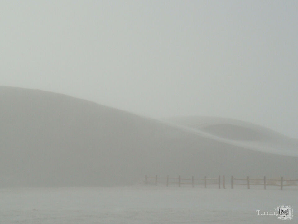 This photo gives a sense of scale to the size of some of the dunes. The wind began to pick up and gave a very haunting effect to the fence and the dunes.