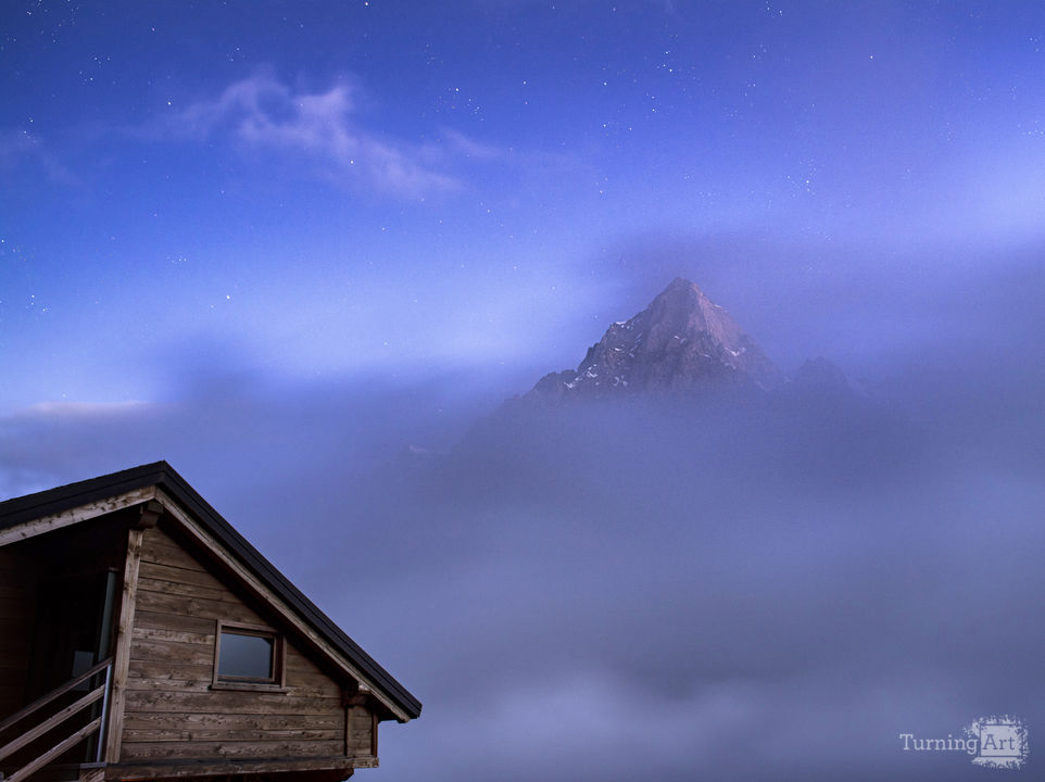 After a 9 mile hike along a balcony trail to the Rifugio Bonatti. I spent the night in The Hunt with spectacular views of Mont Blonc in Italy. The photos was taken around 4 am, just after the moon had disappeared behind the alps.