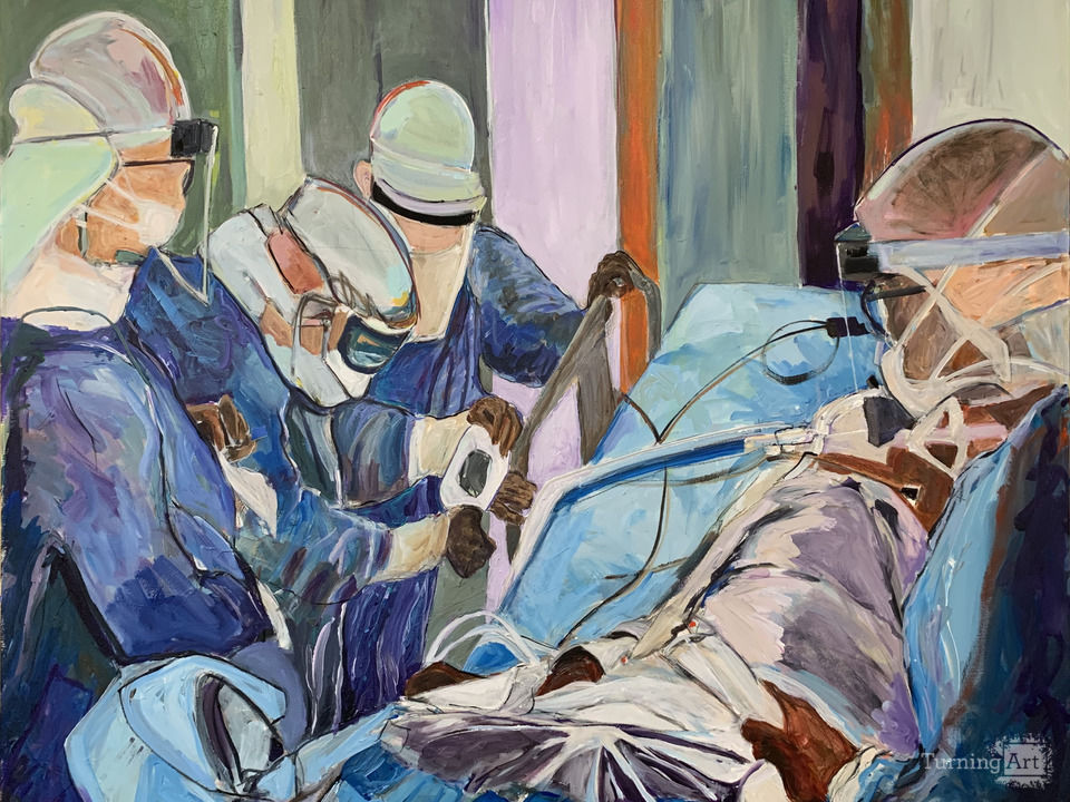 Painted early in 2021. We were in the middle (still are, no?) of COVID. I have to paint what I see, have to paint what's around us, have to paint those I know who disappeared into ICUs. Art is art in part to pay attention. This series was made referencing photos, but we know it was going on, is still going on. Our doctors, nurses and other caregivers deserve what honor I can give them with my brush and the rest of us, my sympathy and concern.