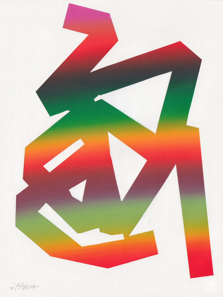 This piece visualizes all of the thoughts, ideas, dreams that live beyond the tip of our tognue. Amber Vittoria is an artist, poet, and author working in Los Angeles, California. Through abstracted form, ribbons of color and joyous words, her work represents the nuances of emotion, beauty, and nostalgia.
