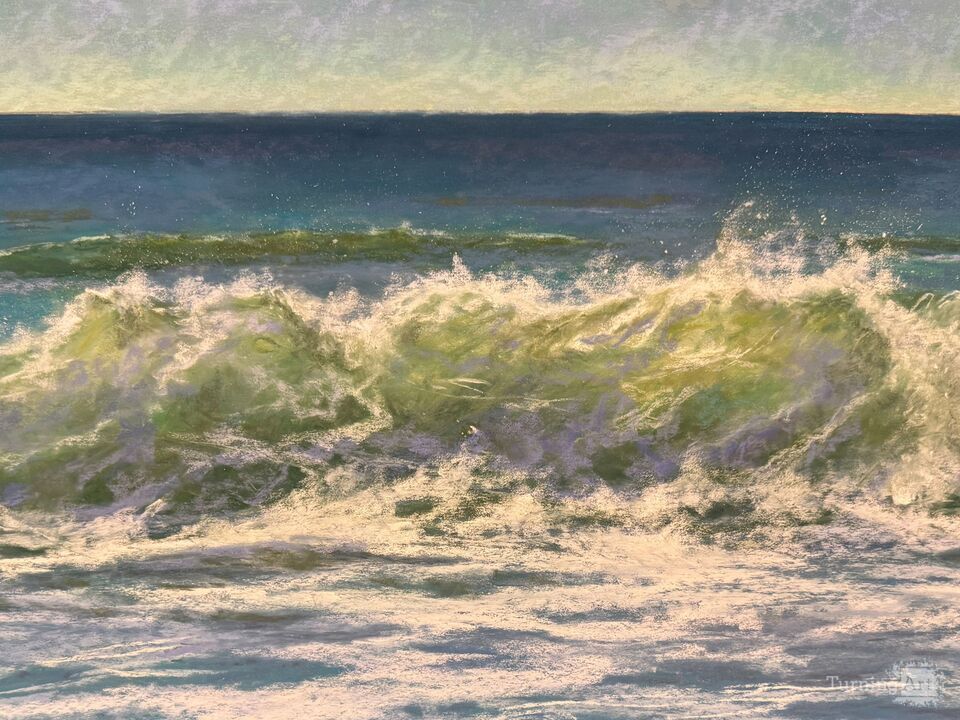 I love a good green value! This wave has so many, from deep dark green to that brilliant poce! of lime. I had such a great time painting this piece!