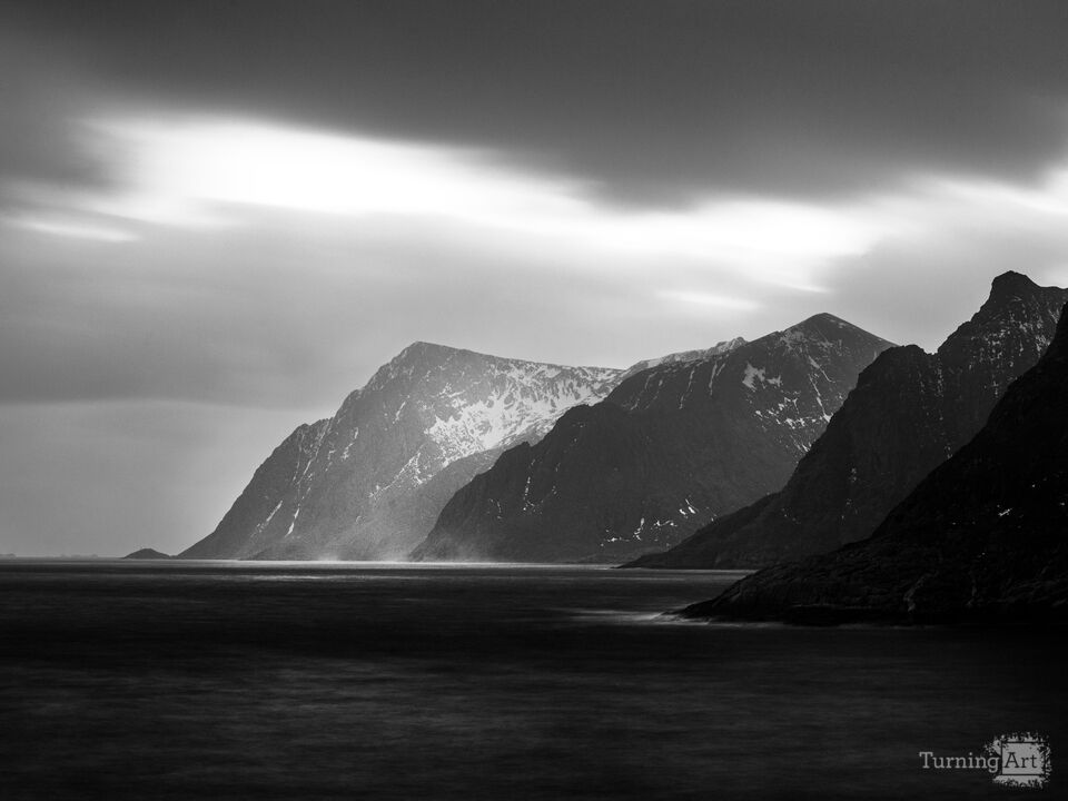 The original Maelstrom. Moody late afternoon in the Lofoten Archipelago near Å, Nordland. While sitting on the cliff making this shot, the wind was so intense that I witnessed mini "tornados" of mist blown off the top of waves.