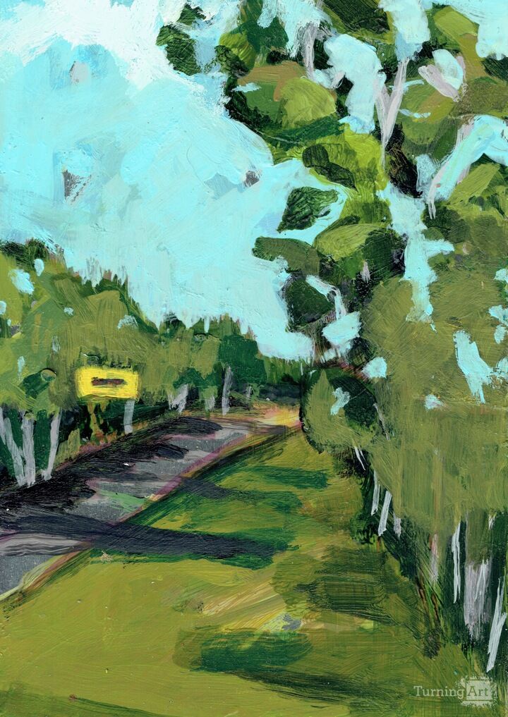 This series by Maggie Jones Boudreaux began with the simple play of color and light on the open road — the anticipation of a bend, the bright yellow pop of the signs, and the sense of adventure. As she painted she realized how much it paralleled life. It is her hope that this little series reminds you to trust the next right turn, find beauty in the moment, and meet inevitable change with curiosity.