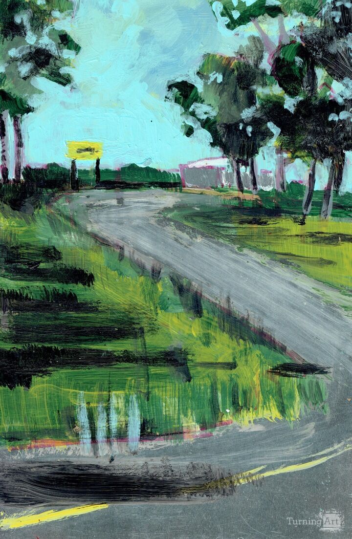 This series by Maggie Jones Boudreaux began with the simple play of color and light on the open road — the anticipation of a bend, the bright yellow pop of the signs, and the sense of adventure. As she painted she realized how much it paralleled life. It is her hope that this little series reminds you to trust the next right turn, find beauty in the moment, and meet inevitable change with curiosity.