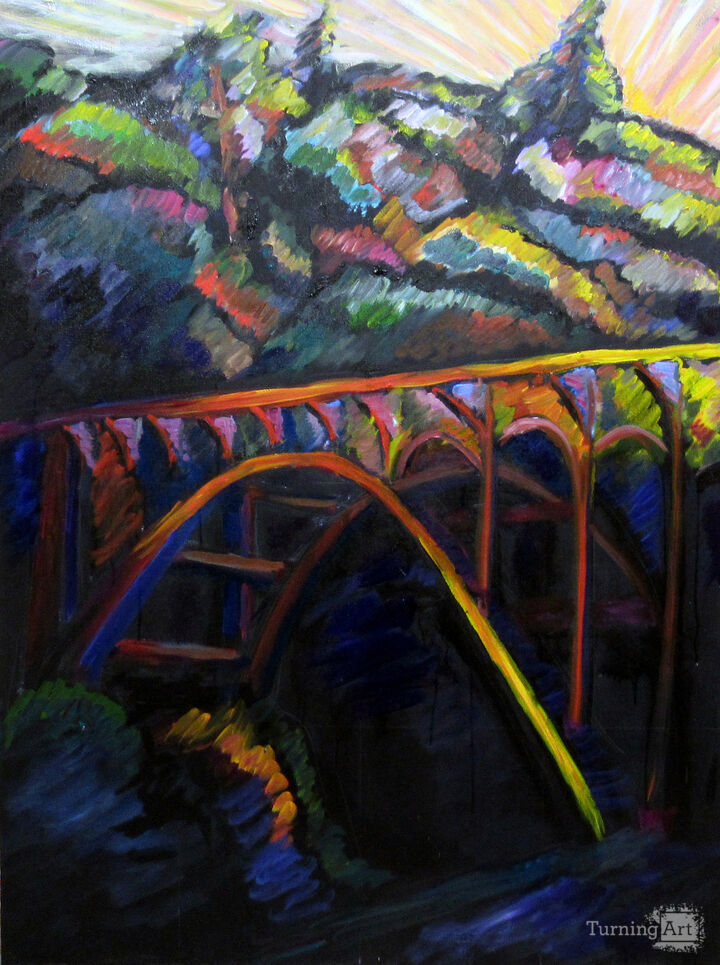 This paintings was created for all of my friends who have lost their pets. It is often referred to crossing over the Rainbow Bridge. Sometimes it is even stated as "I will meet you again at the Rainbow Bridge". Last May, we lost our beloved Huckleberry to heart disease. All of my paintings for the past 12 months have had grief woven into them.