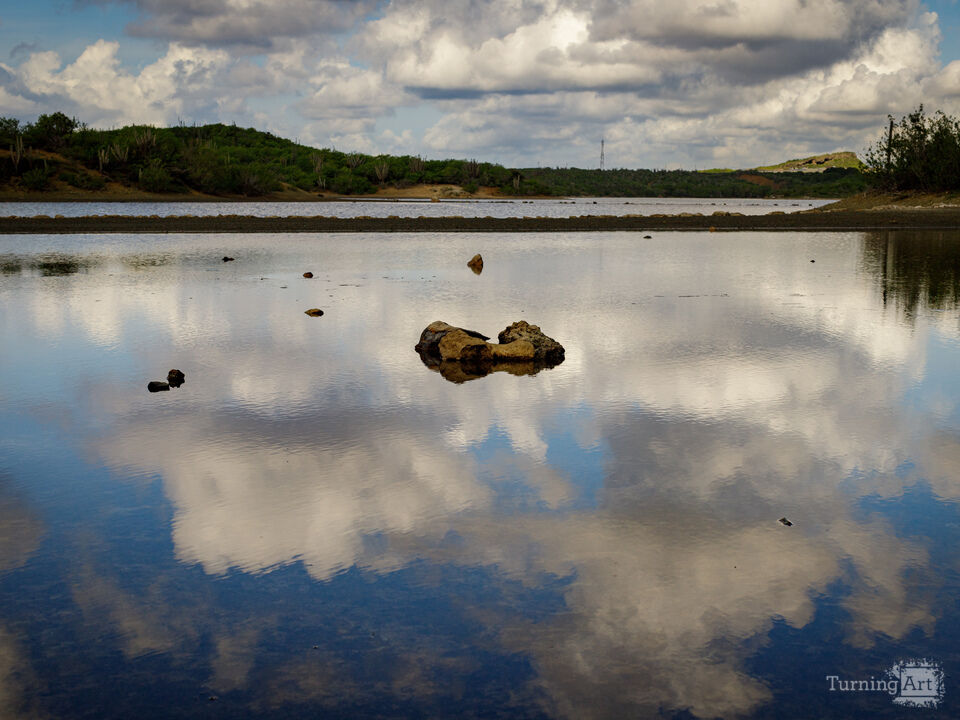 The Salt Pans are a small brackish tidal flat in southeastern Curaçao. Depending on the time of day, it is possible to get pristine reflection shots, as the water is quite shallow, yet expansive.