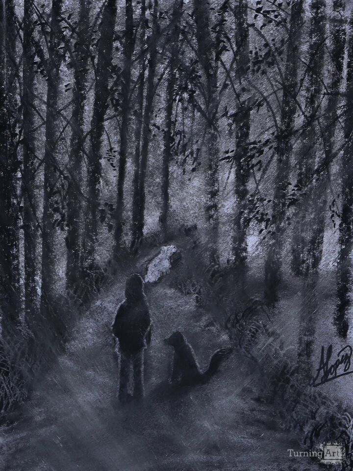 The morning mist drifted low over the forest path as Sole walked, her steps soft against the damp earth. The air was cool and clean, carrying the scent of pine and wet leaves. Ahead of her, Sky, the white dog, moved with purpose, tail high, ears perked, eyes focused on the winding trail before them. He was confident, almost regal in his stride, as if he’d walked this path a thousand times and knew exactly where it led. At Sole’s side danced Luna, her white and black coat bright against the autumn colors. She was young, full of energy, darting from one side of the path to the other, nose pressed to the ground, chasing scents and shadows. Every so often she’d bump gently against Sole’s leg, as if to say, I’m here too. Sole smiled, watching the contrast between them, Sky’s calm assurance and Luna’s wild curiosity. They were different in every way, yet somehow perfectly in tune, each one shaping the rhythm of their walk. When they reached the clearing, the mist lifted like a curtain, revealing a field awash in morning light. Sky stopped at the edge, glancing back as Luna bounded past him, her black and white fur flashing through the tall grass. Sole followed them in. The forest was quiet except for the sound of paws and breath and birdsong. And in that peacefulness, she realized, peace wasn’t something she had to search for. It had been walking beside her all along.