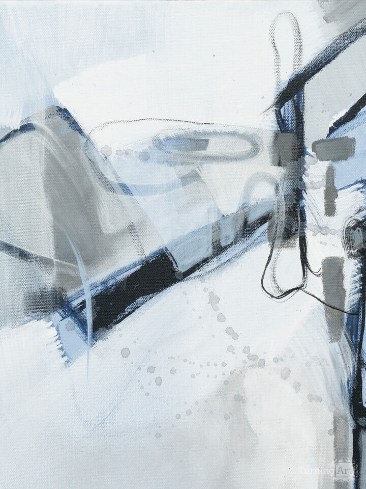 Tiny Dancer Series #3 invites you into a subtle dance between color and form, where soft blues and whites glide effortlessly across the canvas. The composition plays with loosely sketched shapes and intersecting lines, creating layers that suggest both movement and stillness. Varied brushstrokes—from gentle washes to lively, sketch-like marks—add texture and rhythm without overwhelming the serene palette. This delicate balance of geometry and fluidity offers a quiet, contemplative space that feels both fresh and thoughtfully composed. It’s an artwork that encourages a closer look, revealing its nuanced interplay of depth and light with each viewing.