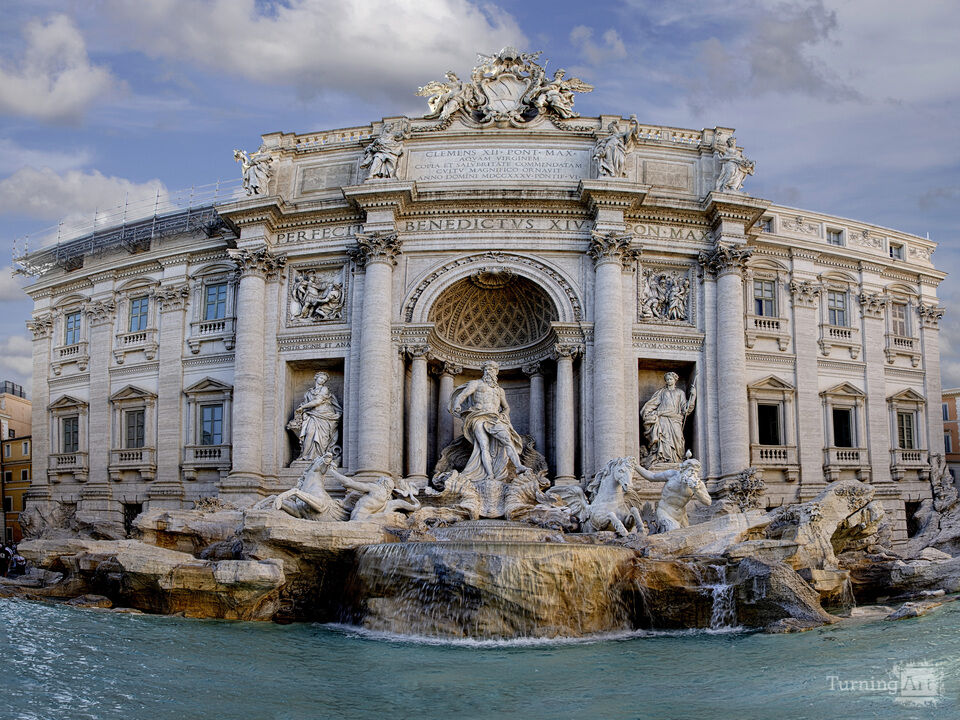 The Trevi Fountain in Rome Italy is a very famous tourist attraction and is visited by thousands daily.