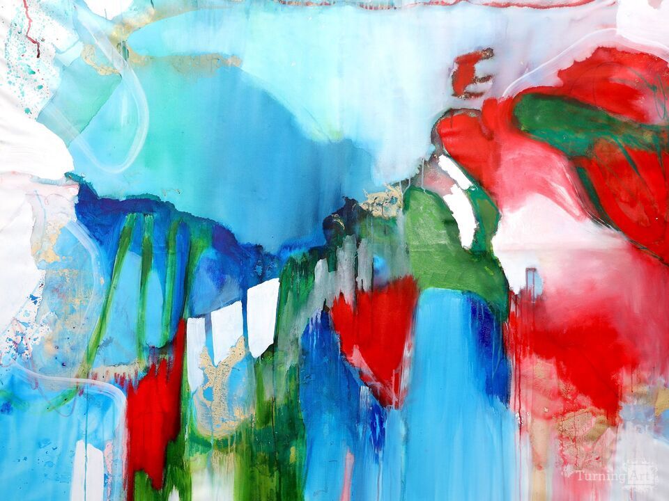 Trust the Process is a captivating statement piece that merges the power of nature with bold, abstract expression. Rich, deep blues and greens evoke the ocean's depth, while vibrant red and subtle gold accents create striking contrasts. Iridescent drips and dynamic brushstrokes add texture and movement, making this painting come alive in any space. The balance of energy and calm in this work will instantly elevate your collection, offering a striking focal point.
