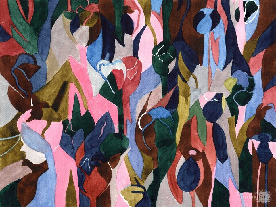 This painting is a part of a series TULIP FEVER created in an abstract manner with a cubist hint.