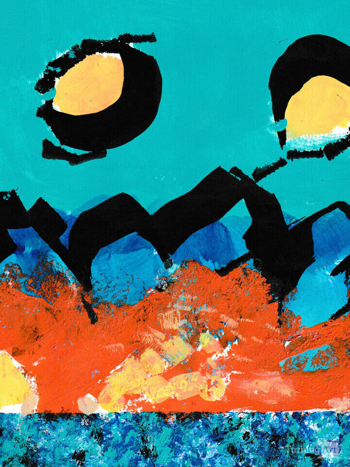 Again I re-visit the realm of abstract landscape that one might see in a dream. I divided the piece into three segments that inter-relate yet stand alone in the technique applied. Sky, earth, and water are endless sources of inspiration . The title refers to the passing of time and the two circular shapes add intrigue and ambiguity