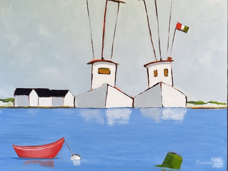 Love to painting the fishing boats that dock at the seaport near where I live, the shapes intrigue me