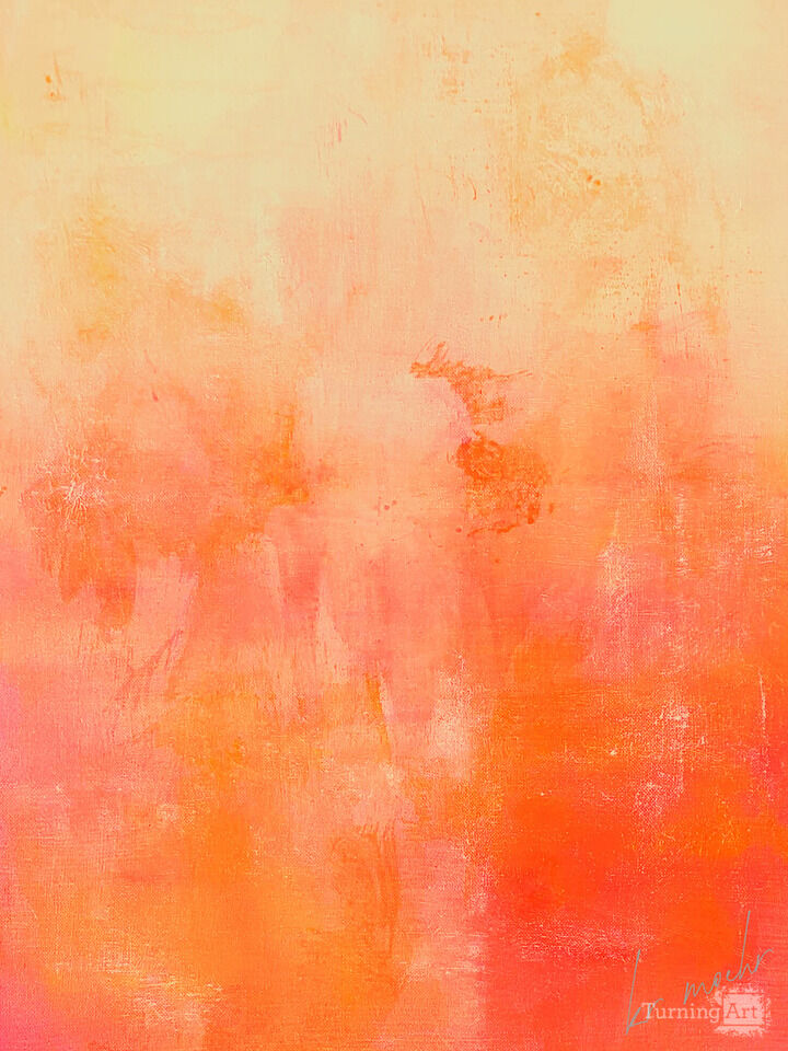 UMBREALLA DRINK I is a sunny and bright layered abstract in yellows, reds, pinks, orange/corals. Upbeat feel with a pop of warm colors.