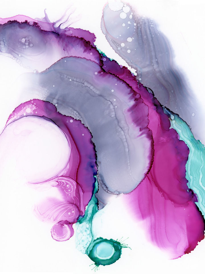 Christy also creates amazing abstract paintings with alcohol inks on a variety of surfaces. She says she has to surrender “control” of her medium to the muse, playfully allowing the inks to dictate what they wish to “say” to her, a bit of whimsy that belies the difficulty of working in a liquid medium on impermeable surfaces. These works have an enormous appeal to the casual as well as serious collectors of her art.