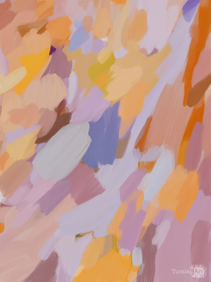 This digital painting came from a peaceful and joyful place. I don’t start with a concept, I start with a feeling. Intuitively following the loose threads of delicate purples, sunny yellows, and soft earthy browns, and letting them inform my next step. Each shape and color perfectly complements the one before it, creating an inviting path for your eye to follow like stepping stones along a gentle stream.