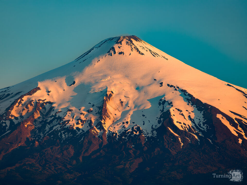Close-up view of the summit of the Villarrica volcano at sunset.