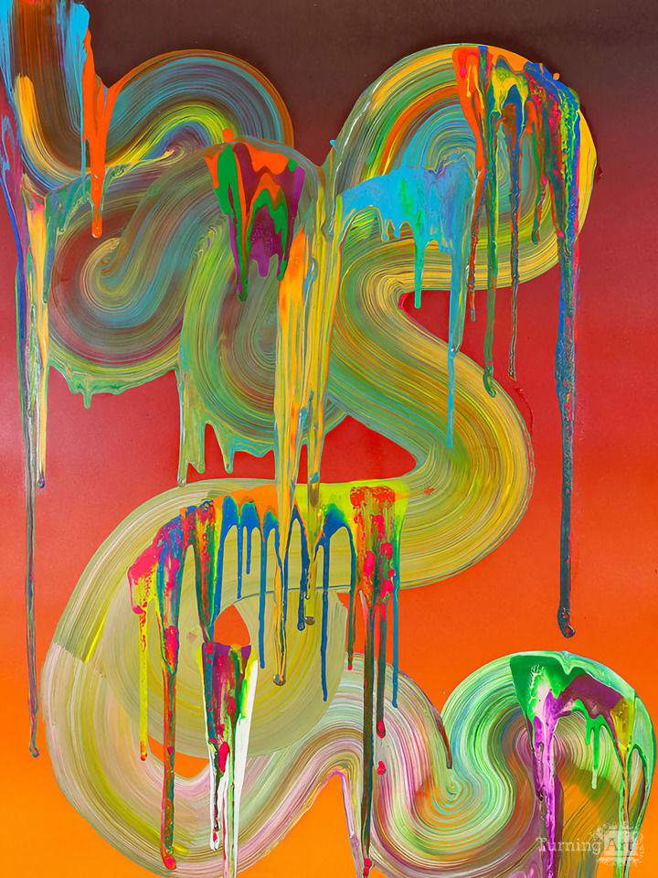 In my Galaxy Landscape collection, I aimed to blend elements of traditional fine art with the dynamic energy of street art. Using vibrant, evolving backgrounds as my canvas, I overlaid them with bold, flowing lines that connected and moved seamlessly across the colors – sometimes harmonizing, other times contrasting. The finishing touch was adding a dripping effect to these linear motions, evoking the raw, urban aesthetic of graffiti street art.