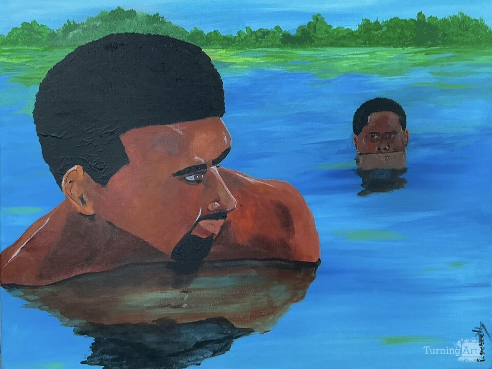 This work captures the tender dynamic of a child searching for guidance in the presence of an adult figure. It reflects both innocence and the quiet gravity of influence, highlighting how identity begins to take shape through connection.
