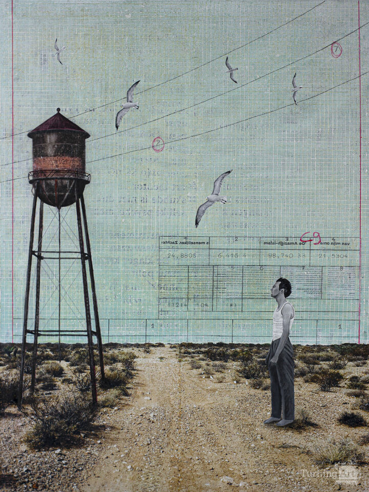 I assemble original photography, assorted papers, acrylics, oil, charcoal, ink, and pencil in my works. The variety of resources I am able to use has proved indispensable to me. The biggest challenge the collage medium posed was its unforgiving lack of transparency. Finding a way to replicate the effects of transparency afforded by paint, especially watercolors, was a large victory for me. The preparing labor shows through in my collages; layer upon layer of material remains visible in the finished pieces. I believe my body of work is characterized by my skill for reinvention. Having always loved the appearance of weathered walls plastered with peeling paint and old posters, I revive this aesthetic with hopefully a keen and professional eye. The creative objective of my work is to “make something beautiful out of dilapidation.” My tableaus explore the dissonance between old and new materials, intertwined in the most beautiful way possible to create dreamlike and melancholy images.