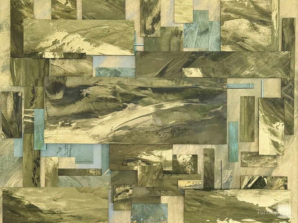 'Wetland' is inspired by the many wetland areas in and around New England. Cattails, saw grass and glass wort with their earthy tones become golden in color as the sun dances on staccato areas of water. All raised areas mounted on archival 8 ply museum board to achieve a layered dimensional effect. Satin varnish for UV protection.
