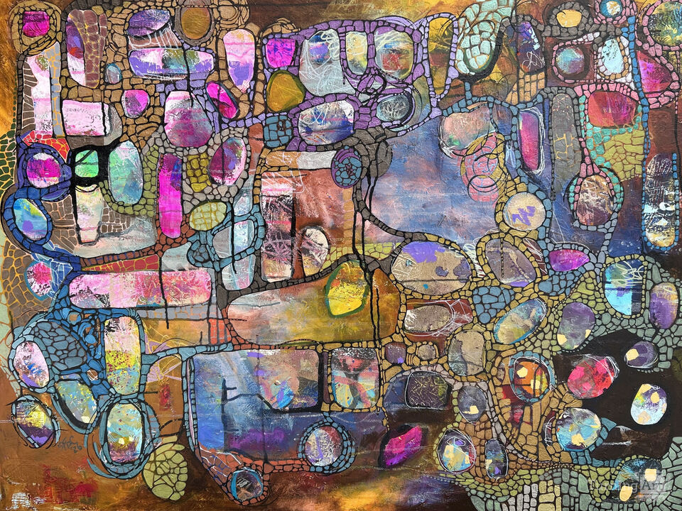 Where I Meet Myself is a playful, layered exploration of joy as a path to inner peace. Bright, mosaic-like forms drift and connect, echoing the freedom found in doing what truly makes you happy. Within this vibrant flow, there is no separation between fun and stillness. Peace emerges naturally when you follow what delights you. This is the space where movement softens, color listens, and you gently arrive at yourself.