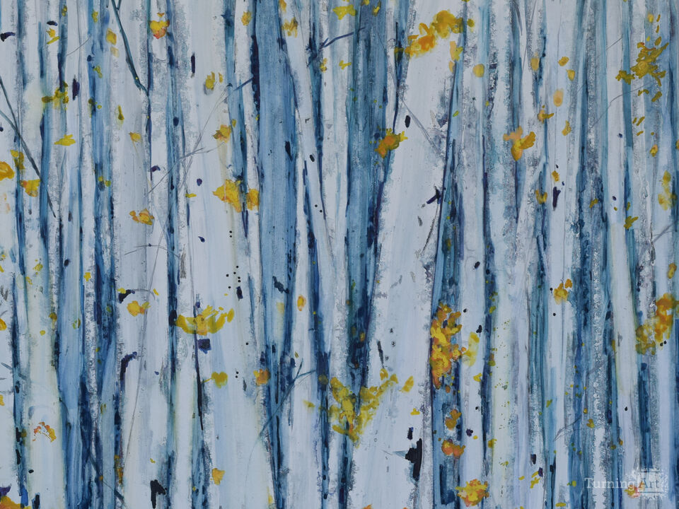 Whispers of the Woods captures the subtle shift in the forest as summer fades. Delicate yellow and orange leaves cling to slender, cool-toned trees, creating a serene and slightly melancholic atmosphere. This watercolor painting evokes the quiet beauty of a season in transition."